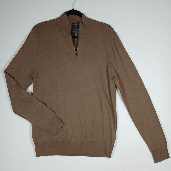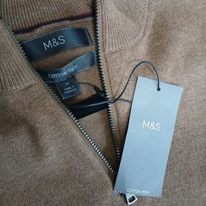 NEW M&S Cotton Rich Zip Sweater Marks & Spencer Tobacco Color Tan Medium #491
