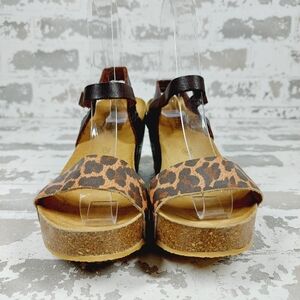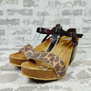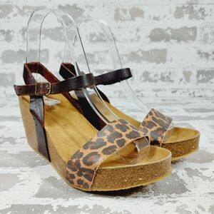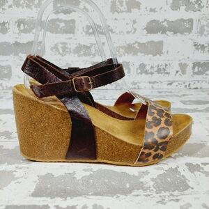 NEW MTNG Leopard Print Brown Leather Buckle Ankle Strap Wedge Sandals C626