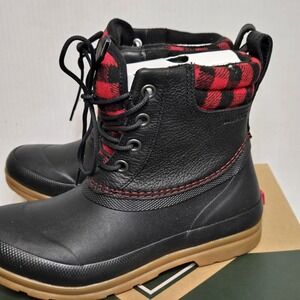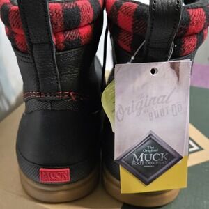 NEW MUCK Black/Red Buffalo Plaid Leather Duck Boots Lace Size 7W NIB
