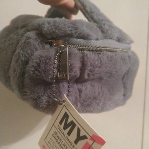 NEW MYTAGALONGS Faux Fur Jewelry Organizer Gray Carry Pouch Zipper Handle NWT