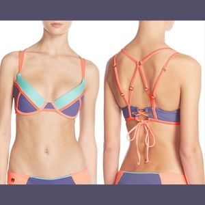 NEW Maaji Colorblock Underwire‎ Bikini Top in Purple/Coral/Blue [SZ XL ]
