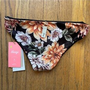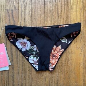 NEW Maaji Reversible Bikini Bottom Ribbed Black floral Size XS NWT