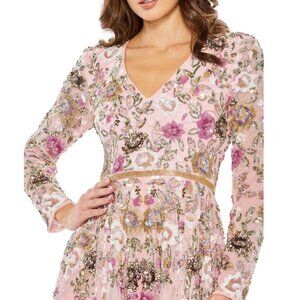 NEW Mac Duggal 5594 Size 22 Rose Pink Floral Beaded Sequin Midi Gown Party Dress