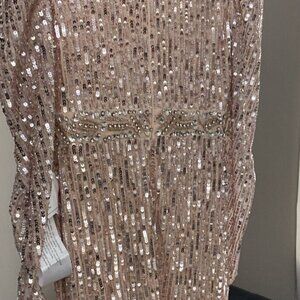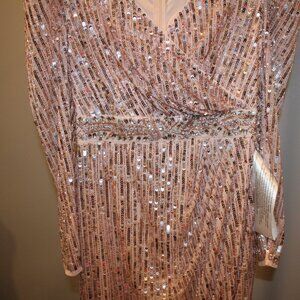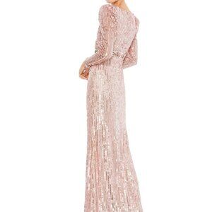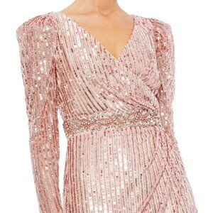 NEW Mac Duggal 93549 Long Sleeve Sequin Puff Sleeve Surplice Gown Rose Gold Sz 6