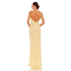 NEW Mac Duggal Beaded sleeveless faux wrap gown in buttercream size 12