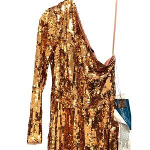 NEW Mac Duggal Copper Sequins One Shoulder Dress Formal Gown Maxi Dress