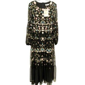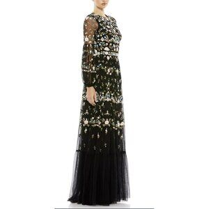 NEW Mac Duggal Embroidered Black Long Sleeve Formal Gown Maxi Dress