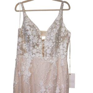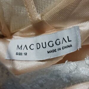NEW Mac Duggal Glitter Floral Applique Column Evening Gown Ivory Size 12 Wedding