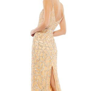 NEW Mac Duggal SLEEVELESS V-NECK BEADED COLUMN GOWN NUDE 5481