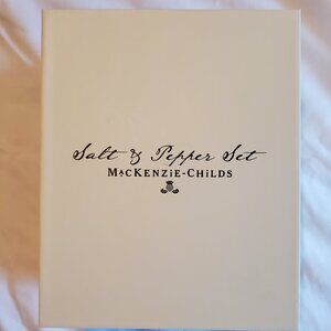 The Mackenzie-Childs Christmas Toyland Train Salt And Pepper Set includes a set of two porcelain shakers in the shape of a holiday-themed train. The colorful and whimsical design is perfect for adding a festive touch to your Christmas table setting. With one shaker for salt and one for pepper, this novelty set is a playful addition to your kitchen or dining decor, making it a charming collectible for the holiday season.
