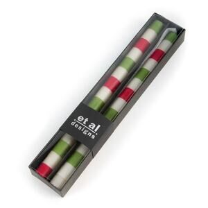 NEW Mackenzie Childs Multi Bands Red & Green Dinner Candles, Set of 2