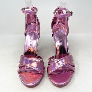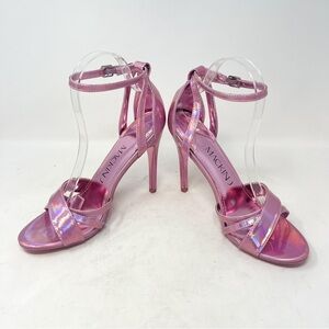 NEW Mackin J Pink Iridescent Open Strappy Faux Leather Sandal Heels