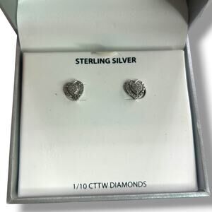NEW Macy's Diamond Heart Earrings (1/10 ct. t.w.) in Sterling Silver Pave Stud