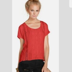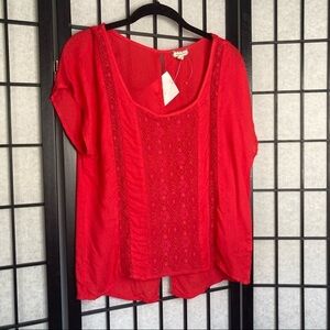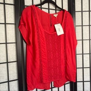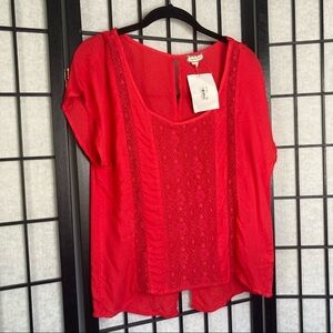 NEW Macy’s Eyeshadow Split Back Lace Detail Scoop Neckline Blouse Top Red Medium