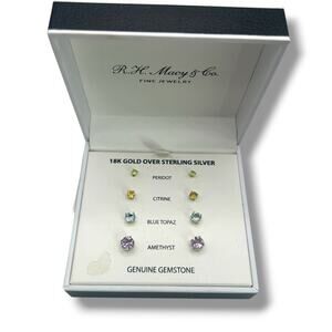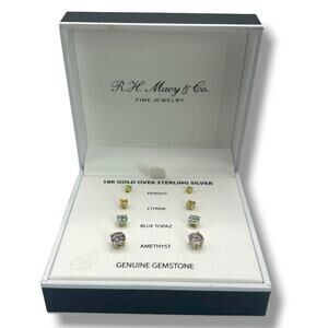 NEW Macy's Gemstone Stud Earrings 18k Gold over Sterling Silver 5-9/10 ct. t.w.