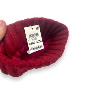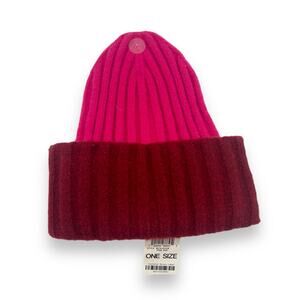 NEW Macy's On 34th Wide Ribbed Hot Pink Color block winter beanie Hat NWT