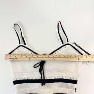 NEW Madden NYC White & Black Crochet Knit Tank Dress Pointelle Bow Tie - Size XS