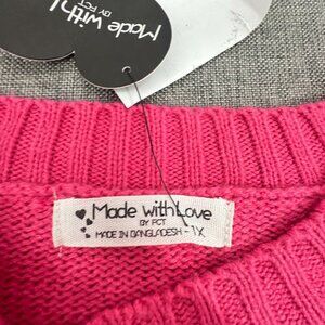 NEW! Made with Love By FCT Knit Sweater Pink White Clouds Plus 1X Acrylic $49