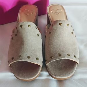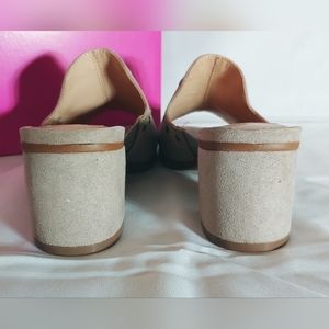New in the box. Ladies dress casual slide. Faux suede upper. The color is called cement. It is almost like a khaki color. The perfect mix of tan and gray. 2.25" heel.