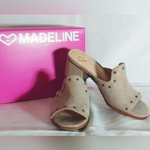 NEW Madeline Ladies Bossy Tan/Gray Cement Heeled Shoe / Slide / Sandal / Clog
