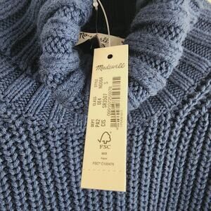 NEW Madewell Blue White Stripe Wide Ribbed Turtleneck Knit Sweater
