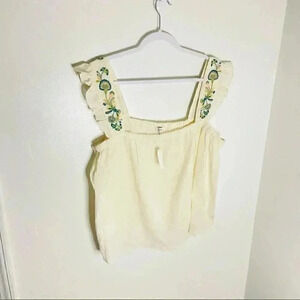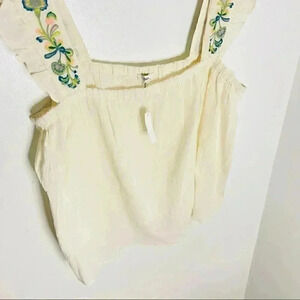 NEW Madewell Embroidered-Strap Swing Top Floral Embroidery Bohemian Cottagecore