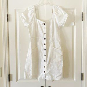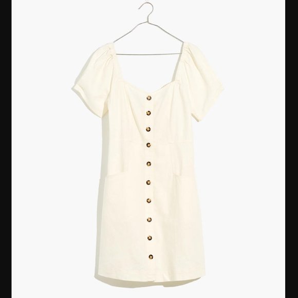 ✨NEW✨ Madewell Linen Cotton Puff-Sleeve Button-Front Retro Shift Dress