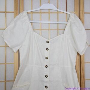 NEW Madewell Linen-Cotton Puff-Sleeve Mini Dress, lighthouse, 16