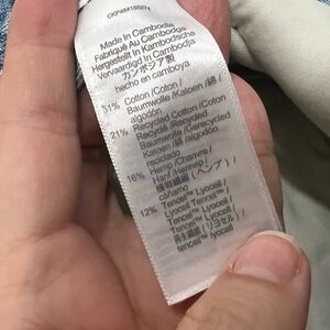 51% cotton, 21% recycled cotton, 16% hemp, 12% Tencel lyocell
