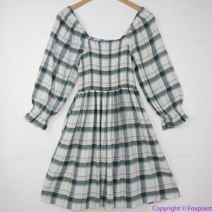 NEW Madewell Lucie Elbow-Sleeve Smocked Mini Dress in Lebaum Plaid, XXL