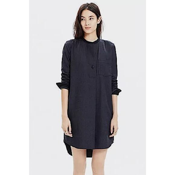 NEW Madewell M Latitude Wool Flannel Shirt Dress Long Sleeve Tunic Charcoal Gray