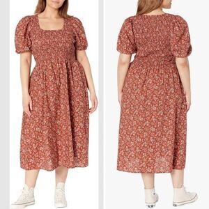 NEW Madewell Plus Harper Puff Sleeve Scoop Neck Lucie Midi Dress, 24W