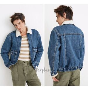 NEW Madewell Sherpa-Lined blue Denim Zip Jacket, size S