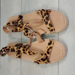 NEW Madewell The Malia Espadrille Leopard Calf Hair Sandals shoes sz 10M