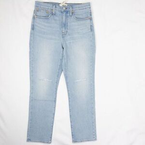Madewell The High-Rise Slim Crop Boyjean in Dumas Wash: Ripped Edition, size 26. Light wash jeans.