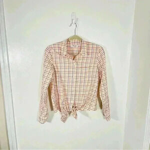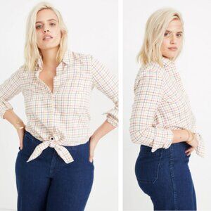 NEW Madewell Tie-Front Shirt Rainbow Plaid Button Front Preppy Academia Neutral