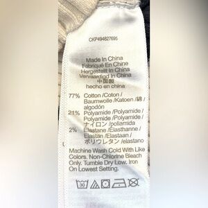 FABRIC: 77% cotton/21% polyamide/2% elastane. Machine washable.