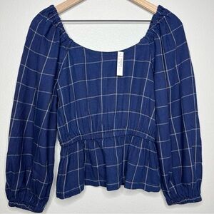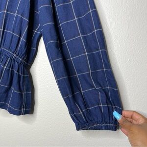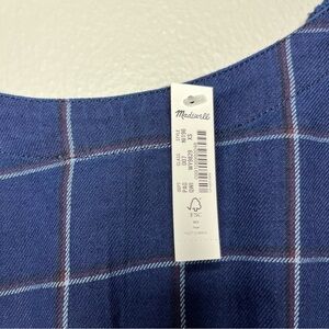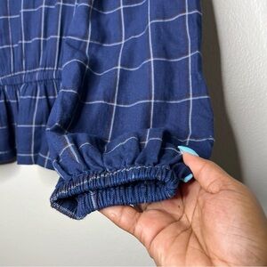 NEW Madewell Women Blouse XS Scoopneck Peplum Navy Blue Windowpane