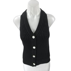 NEW Madewell Women's Black Sleeveless Button Up V Neck Sweater Vest Top Size XS