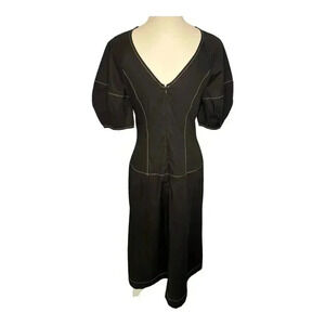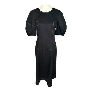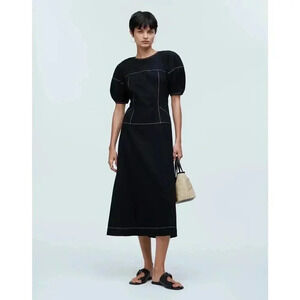 NEW Madewell Women’s Size 0 Black Puff-Sleeve Drop-Waist Midi Dress NWT