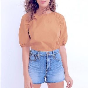 Madewell jean shorts with classic 5 pocket style and a frayed raw hem from the vintage collection line