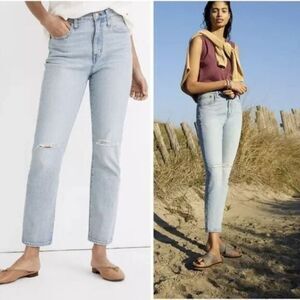 NEW Madewell High-Rise Slim Crop Boyjean in Dumas Wash: Ripped Edition, size 28