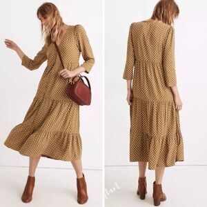 NEW Madewell V-Neck Tiered Button-Front Midi Dress in Daisies Forever, 00