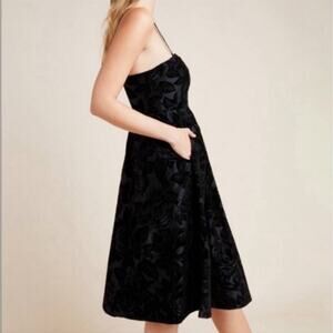 Maeve Anthropologie Jonquil Dress, Maeve Black Floral Midi Dress, Maeve Velvet Strapless Dress, Anthropologie Floral Velvet Dress, Maeve Jonquil Midi Dress, Midi dress, Strapless, Cocktail dress, Party dress, Special occasion, Velvet, Crushed velvet, Floral print, Black, Black dress