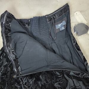 NEW Maeve Anthropologie Jonquil Black Floral Velvet Strapless Midi Dress