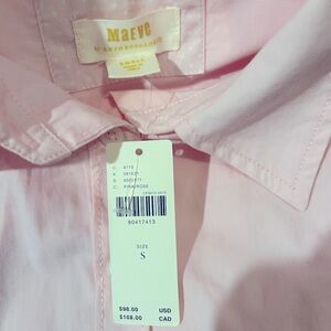 NEW Maeve Anthropologie Tunic Button Up Shirt Women’s Small Pink Hi-Lo Loose Fit