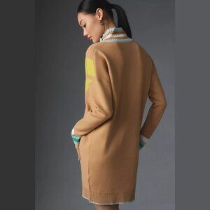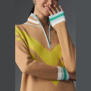 NEW Maeve Size L, Women's Varsity Half-Zip Tunic Mini Dress - Neutral Motif