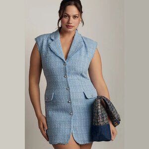 NEW Maeve Sizes 8, 10, 12 Womens Sleeveless Tweed Blazer Mini Dress - Light Blue