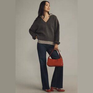 NEW Maeve Sizes M, L Women's Layered Polo V- Neck Sweater - Grey
