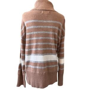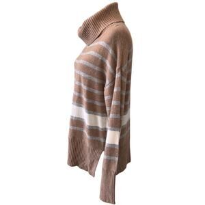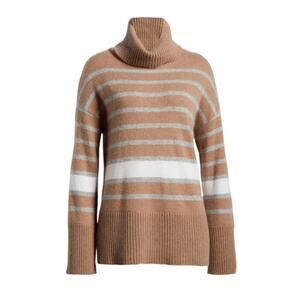 NEW Magaschoni Toasted Brown Combo Stripe Cashmere Turtleneck Sweater Size L